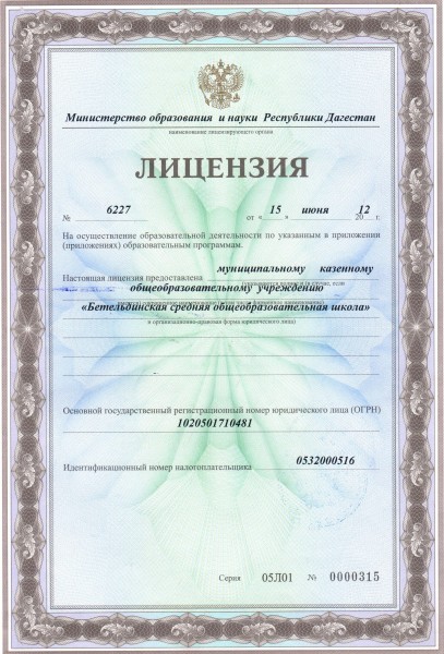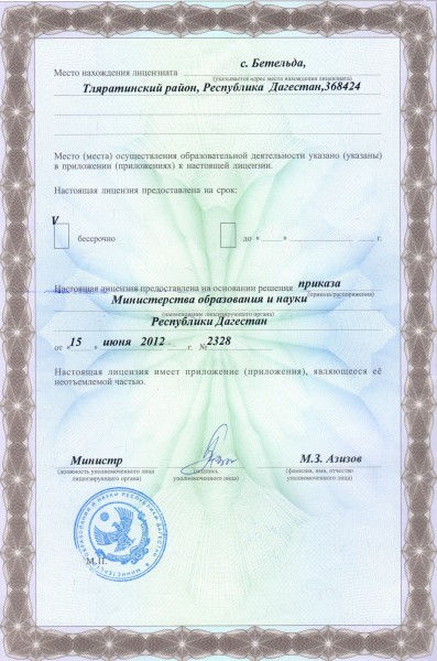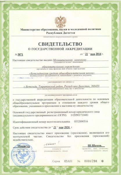 | Полное наименование образовательной организации* | Муниципальное казенное общеобразовательное учреждение "Бетельдинская средняя общеобразовательная школа" |